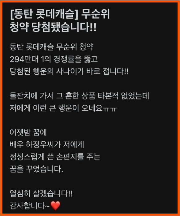 캐슬체인 마에스트로0입니다. 오늘은 역대급 청약 경쟁률을 자랑한 동탄역 롯데캐슬의 무순위 청약 당첨자 발표 소식을 전해드릴게요. 정말 뜨거운 관심을 받은 이 청약 소식, 함께 알아봅시다 :)