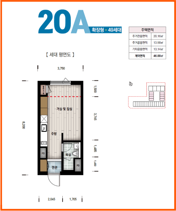 20A형 : 보증금 3700만원, 월세 16만원.