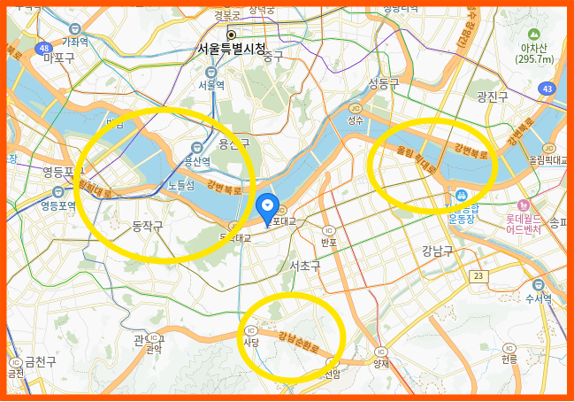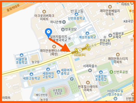 9호선 신반포역과 바로 맞닿아 있어 초역세권의 장점을 누릴 수 있어요. 반포동 자체가 이미 가치가 높은 지역인데, 여기에 역세권이라는 타이틀까지 더해져 미래가치가 더욱 높아질 거예요.