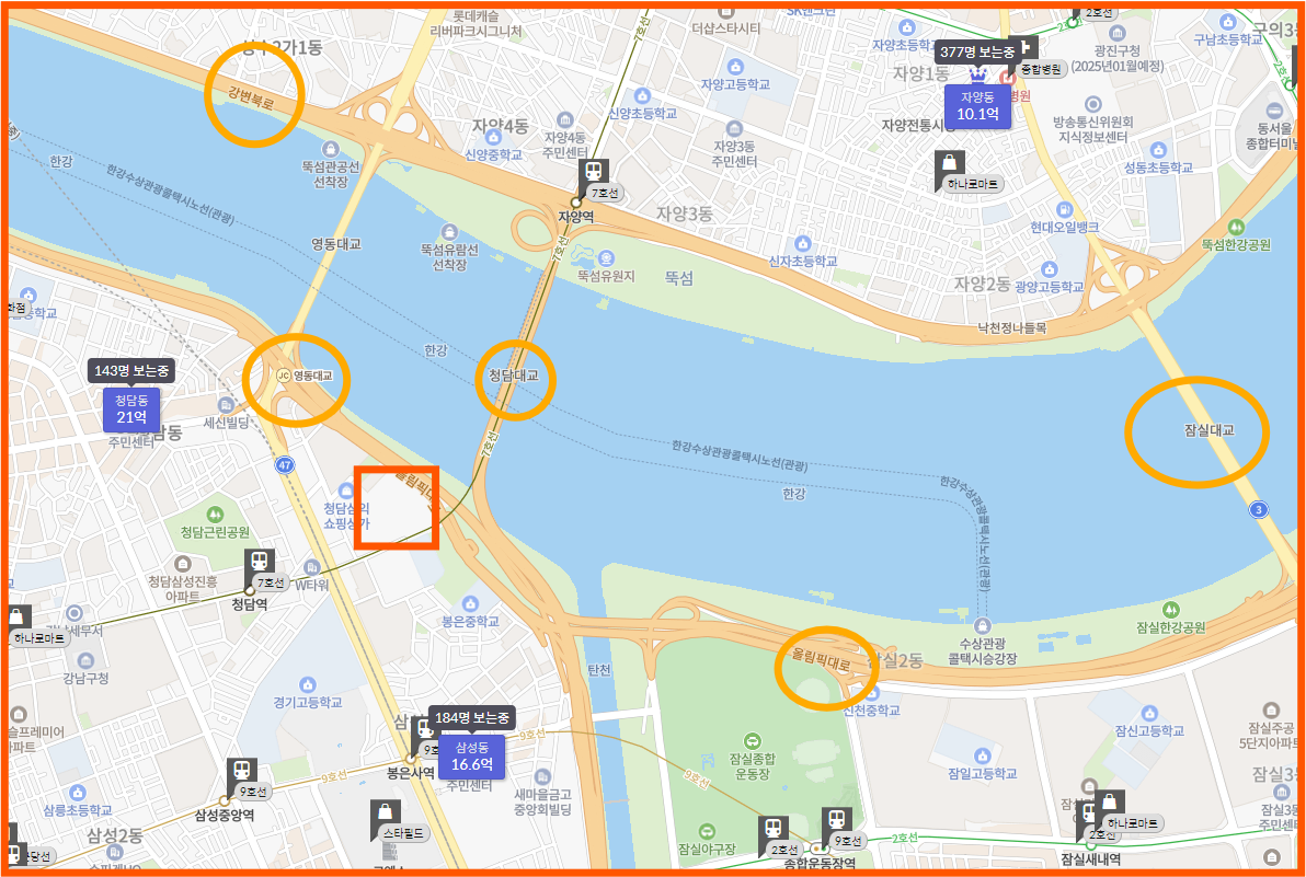 올림픽대로, 강변북로, 동부간선도로 등 주요 도로와도 가까워 서울 전역으로의 이동이 편리하답니다.