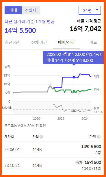 34평 기준 전세 가격이 6억 이상이고, 현재 매매 호가는 최소 16억에 달해요. 이렇게 높은 가치를 지닌 아파트를 분양가에 당첨받을 수 있다면, 정말 좋은 기회 아닐까요? 특히 전세를 놓으면 분양가에 대한 걱정은 전혀 할 필요가 없어요.