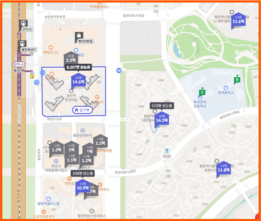 위치는 말할 것도 없이 최고죠. 롯데백화점과 바로 이어져 있고, GTX-A 동탄역과도 바로 연결되어 있어서 교통과 쇼핑, 모든 면에서 완벽한 위치예요.