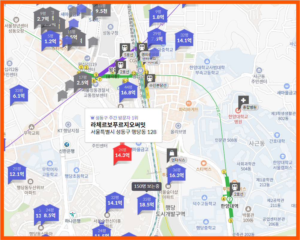먼저, 라체르보 푸르지오 써밋은 왕십리에서 도보 10분 거리인 성동구 행당동에 위치해 있어요.